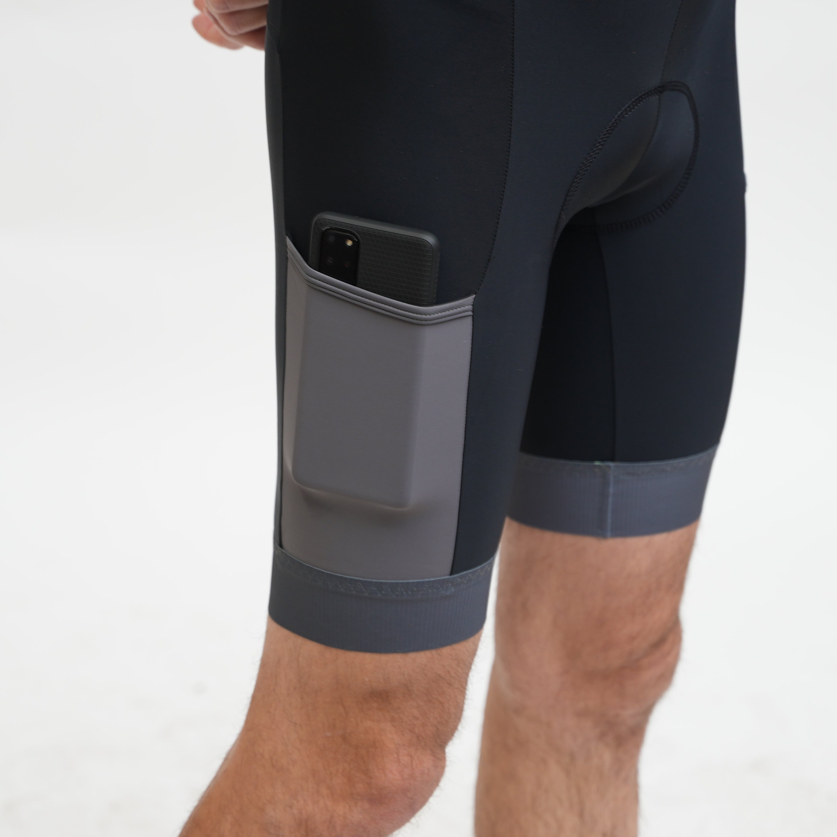 I like pocket bibs for gravel rides as there's no guarantee the road will be smooth enough to let me reach into my jersey pocket while navigating aroound a hydration pack. Leg pockets in general have been great for unsupported 60-100+ mile rides when I need to carry extra food, and they're also handy to stash empty wrappers so they don't fall out and litter. I've found these secure enough for my phone, yet providing easy access even with full-finger gloves.